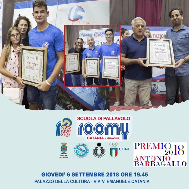 I PREMI BARBAGALLO. Parte integrante della serata saranno i premi dedicati ad Antonio Barbagallo, padre fondatore della Roomy. Oltre ai tre istituzionali – assegnati al sindaco di Catania Salvo Pogliese, all’assessore allo Sport Sergio Parisi e all’assessore alla Pubblica Istruzione Barbara Mirabella, saranno premiati i giovani Greta Catania e Matteo Maccarrone, le società Pvt Modica, Papiro, Amici del Volley Giarre e Pallavolo Aragona, alla carriera per Mario Cardillo e Michele Rocca. Il premio come migliore allenatore è stato assegnato ad Alessandro Giovannetti, tecnico della Kondor Catania, che ha vinto nella scorsa stagione lo scudetto Under 14 femminile con la Volleyrò Roma. Nello spazio dedicato alla ricorrenza dei 40 anni, in rappresentanza delle migliaia di atleti e atlete tesserate Roomy, riceveranno un premio: Fabio Tringale, Rosario Carpentieri, Piero Maccarone e Paolo Di Lorenzo.